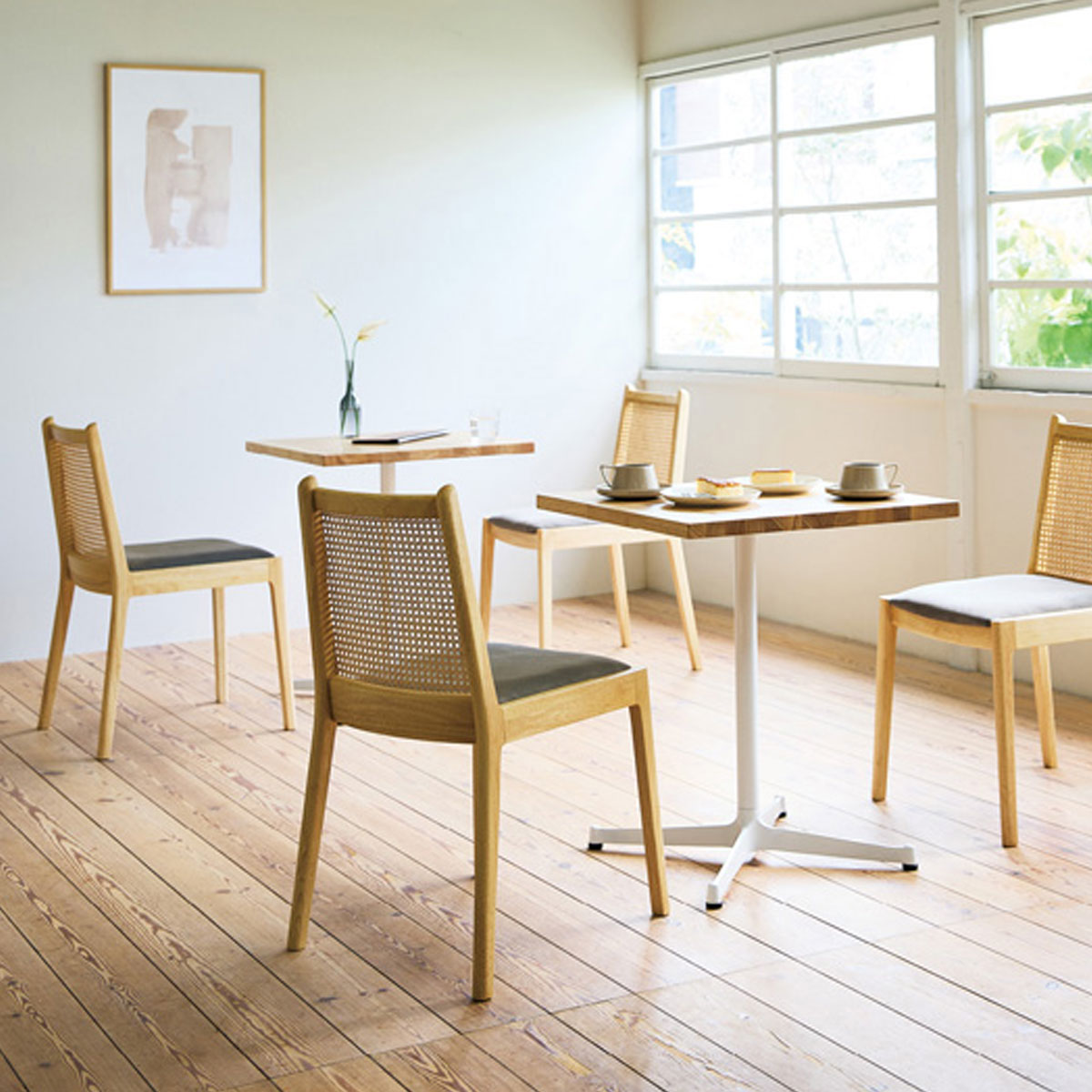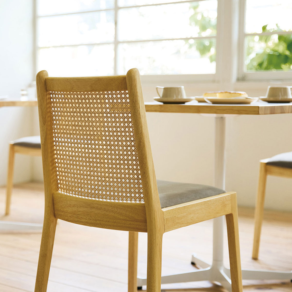 細部に丸みを付けることで、優しい印象に仕上げた木製チェア。